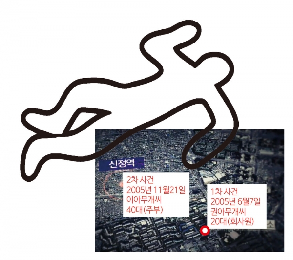 지난 2005년과 2006년 신정동 주민들을 공포로 몰아넣은 사건이 잇따라 발생한다. 20대 후반의 회사원 권아무개씨는 신정동에서 가족들과 거주했다. 그는 6월6일 현충일을 맞아 오전 9시쯤 아침식사를 한 뒤 여유롭게 쉬고 있었다. 그런데 몸이 평소답지 않았다. 감기 기운이 돌자 이날 오후 “약국에 다녀오겠다”며 집을 나섰다. 그게 마지막이었다. 권씨는 다시는 집에 돌아오지 못했다. 휴대전화도 꺼져 있었다.