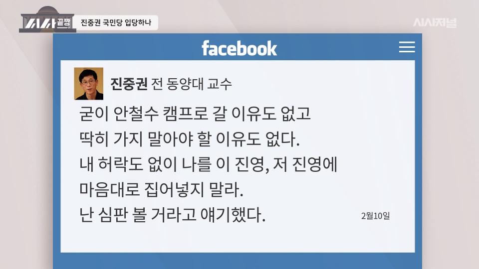 [시사끝짱]진중권 국민의당 입당설에 진중권 “내 허락도 없이…”
