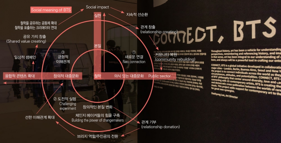 BTS는 아티스트로서가 아니라 그 이상의 소셜 임팩트를 지원하는 아이콘으로 국제사회에 긍정적 영향을 줄 수 있는 대중문화의 새로운 가치가 무엇인지 근본적 질문을 던졌다. 그들이 주장하는 좋은 메시지와 선한 영향력은 모든 이해관계자와 이익을 공유하는 것이다. 이는 진정한 공익이라는 새로운 패러다임을 제시한 것이기도 하다.