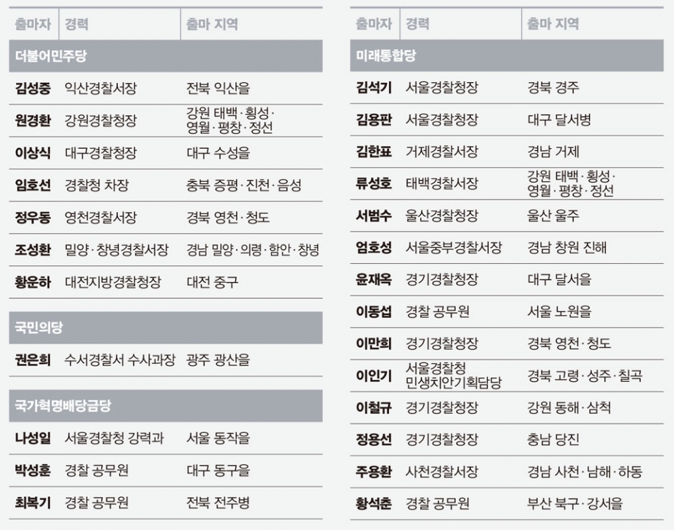 [4·15 총선 경찰 출신 출마 후보자 25명 분석] 민주당 7명, 통합당 14명