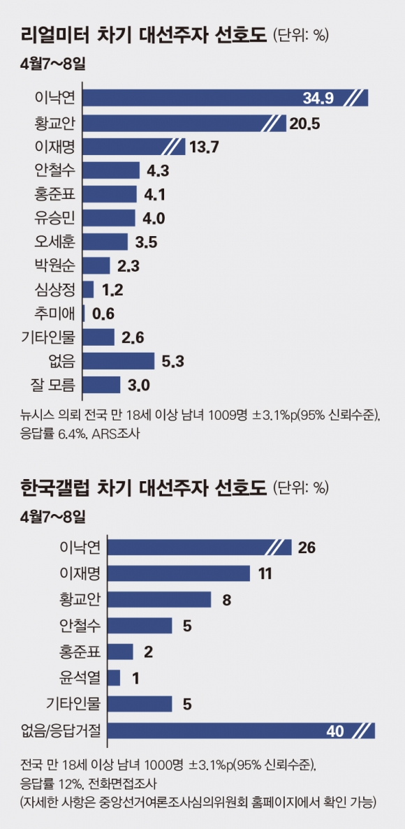 하지만 당분간 이 당선인이 차기 대선후보 경쟁력에서 선두를 질주할 것이란 데는 누구도 이견을 달지 않는다. 윤 센터장의 지적대로 가장 취약한 문제였던 당내 기반도 어느 정도 구축했다. 현 대선후보 지지율 1위라는 프리미엄을 최대한 활용하며 일찌감치 ‘정치 1번지’ 종로 출마를 선언했고, 상임선대위원장을 맡아 전국 유세에 나서면서 전국구 존재감을 한껏 과시했다. 각 지역구 후보들의 지원 요청이 잇따랐고, 그는 약 40명에 이르는 후보들의 후원회장을 맡는 것으로 자신의 계파를 만들었다.