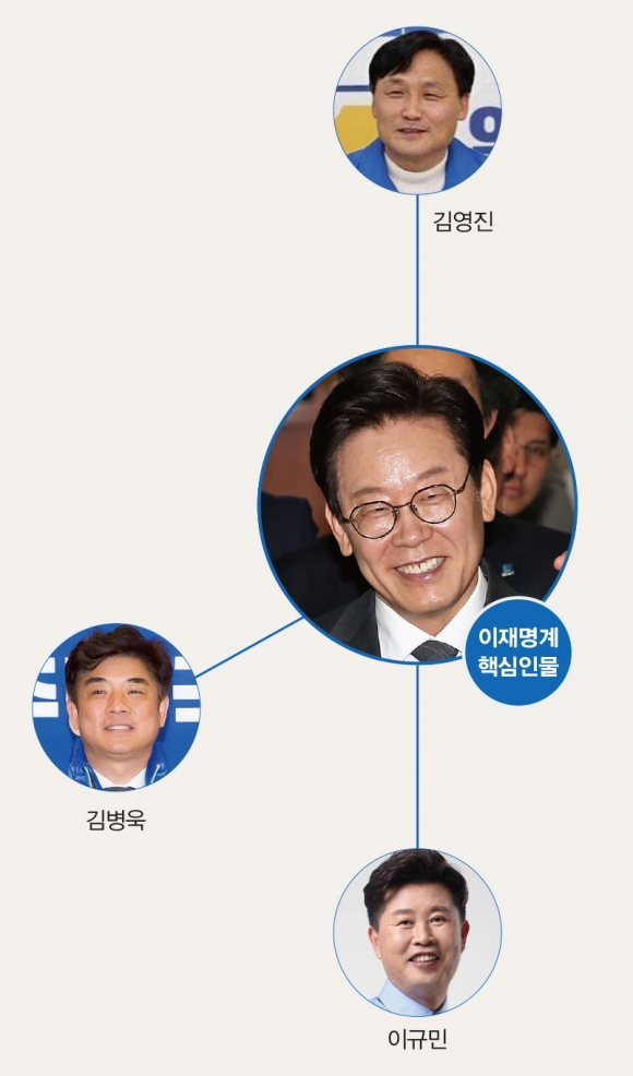 당초 이 지사는 21대 총선을 통해 자신과 가까운 인사들을 국회로 보내는 것을 최우선 과제로 생각했다는 후문이다. 그러나 결과적으로 이 지사의 계획은 이뤄지지 못했다. 5선의 이종걸 의원과 3선의 유승희 의원은 경선에서 컷오프됐고, 초선인 제윤경 의원은 불출마를 선언했다. 재선에 성공한 김영진(경기 수원병)·김병욱(경기 성남 분당을) 의원이 비교적 이 지사와 가깝다. 김병욱 의원은 이 지사가 시장으로 재직한 성남시가 지역구다. 수원월드컵경기장관리재단 사무총장으로 활동한 이규민 당선자(경기 안성)도 이재명계로 분류된다. 현실적으로 이들이 대놓고 당내에서 계파활동을 이어가긴 쉽지 않다. 이번에 원내대표 선거에서 열성 친문 당원들의 비난을 받은 정성호 의원도 지역구가 경기도 양주인 데다, 이재명 지사와 가깝다고 알려진 게 비난 메시지 폭발로 이어졌다.