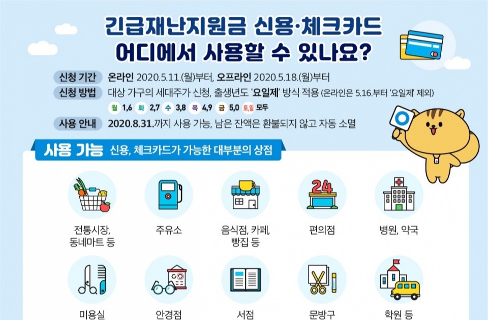 11일부터 재난지원금 신용․체크카드 온라인 신청, 방법은?
