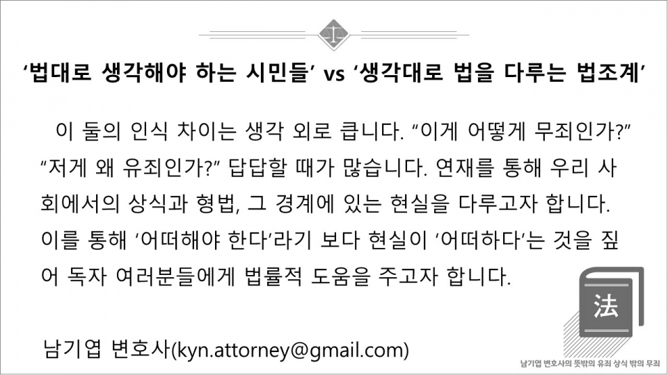 직업상 매일 보는 사람들이 소송 당사자들이지만 사실 보통의 사람들은 평생에 소송을 한 번 해볼까 말까 한다. 누군가는 소송을 즐기는 경우까지 봤지만, 누군가에는 평생의 상처가 된다. 갈등 끝에 할 말이 없을 때 뭐라고 할까? “법대로 하자”고 한다. 이 말에는 그 어떤 배려와 예의, 동정과 공감도 배제한 채 싸우겠다는 의지가 내재한다.