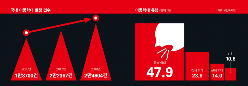 정부는 2014년 ‘아동학대범죄의 처벌 등에 대한 특례법’을 제정했다. 이로써 아동에게 중상해 이상의 피해를 입히거나 3차례 이상 같은 범죄를 저지른 사람은 구속 수사하고 최대 무기징역까지 선고가 가능해졌다.