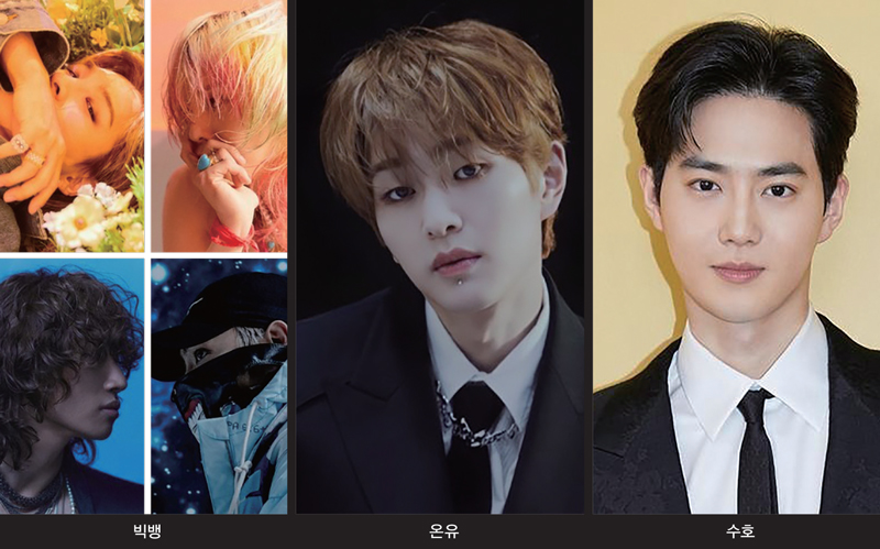 아이돌의 컴백도 계속된다. 샤이니의 독보적인 보컬 온유가 4월 신곡으로 컴백을 예고하고 있다. 2018년 12월 발매한 첫 번째 미니앨범 ‘Blue’ 이후 3년4개월 만이다. EXO의 리더 수호도 두 번째 미니앨범 ‘Grey Suit’로 돌아왔다. 이번 앨범에는 수호의 감미로운 보컬과 따뜻한 감성을 들을 수 있는 6곡이 수록됐다. 드라마 《의리남》에서 남자주인공 박재찬이 속한 그룹 동키즈(DONGKIZ)는 DMK로 이름을 바꿔 컴백한다. 동키즈의 첫 번째 멤버인 원대가 탈퇴하고, 새 멤버 3명을 영입해 6인조 그룹을 결성했다. 드림캐쳐도 1년3개월 만에 정규앨범으로 컴백한다. 빅뱅은 ‘꽃길’ 발매 4년여 만에 4인조로 돌아온다. 《거짓말》 《마지막 인사》 《뱅뱅뱅》 등 수많은 히트곡을 탄생시킨 빅뱅이 이번 컴백에서 어떤 곡을 선보일지 관심거리다.