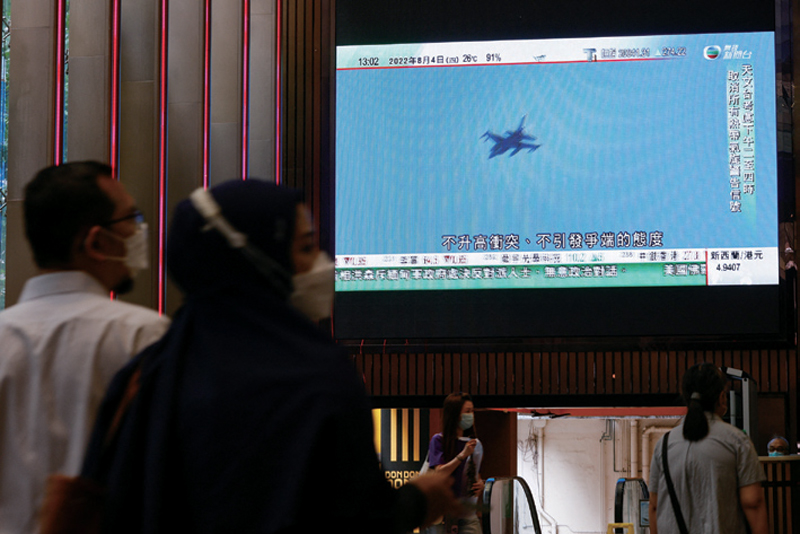 펠로시 의장이 대만에 머무르는 동안 중국은 격노했다. 왕이 국무위원 겸 외교부장은 미국과 대만을 향해 “불장난을 하면 반드시 불에 타 죽는다”고 경고했다. 이런 경고는 공수표로 끝나지 않았다. 펠로시가 대만을 떠난 다음 날부터 중국은 ‘대만 포위’ 군사훈련에 들어갔다. 훈련 첫날인 8월4일 하늘에는 군용기 100여 대가 동시에 투입됐다. 전투기·폭격기·수송기·공중급유기 등 다양한 기종이 동원됐고, 스텔스 전투기인 J-20도 참가했다. 게다가 적지 않은 군용기가 중국과 대만 사이의 대만해협 중간선을 넘어갔다. 대만의 방공식별구역(ADIZ)만 침범했던 이전보다 더욱 도발적인 행태다.