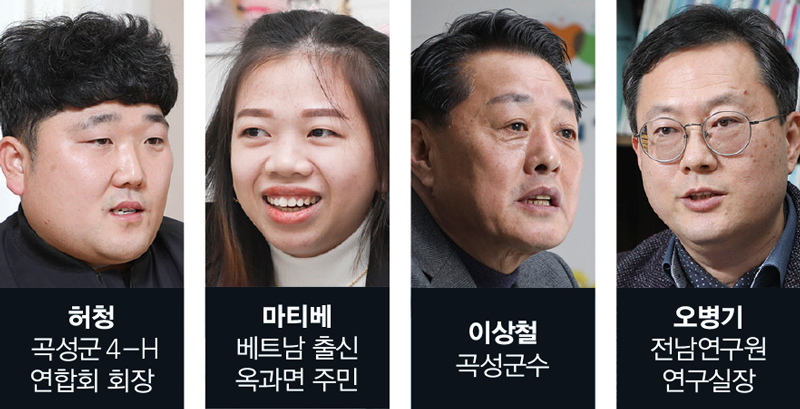 허청 곡성군4-H연합회장은 “정착지원금을 받으면 초보 농업인도 농작물 생산은 할 수 있지만 판로 개척에 어려움을 겪어 결국 공판장에 헐값으로 넘기는 경우가 부지기수”라고 했다. 또 “축산업의 경우 축사 하나 짓는 데만 수억원이 들다 보니 웬만한 자본금 없이는 시작하기조차 어렵다”고 했다. 이상철 곡성군수는 “청년 농업인을 위한 스마트 온실과 교육시설, 기숙사 등을 구축할 계획”이라고 밝혔다. 또 “학생과 학부모 모두 곡성에 정착할 수 있도록 유도하는 농촌유학 제도는 현재 시행 중”이라고 했다.