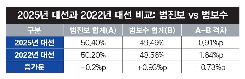 ‘범진보 득표율’ 2022년과 2025년 거의 비슷